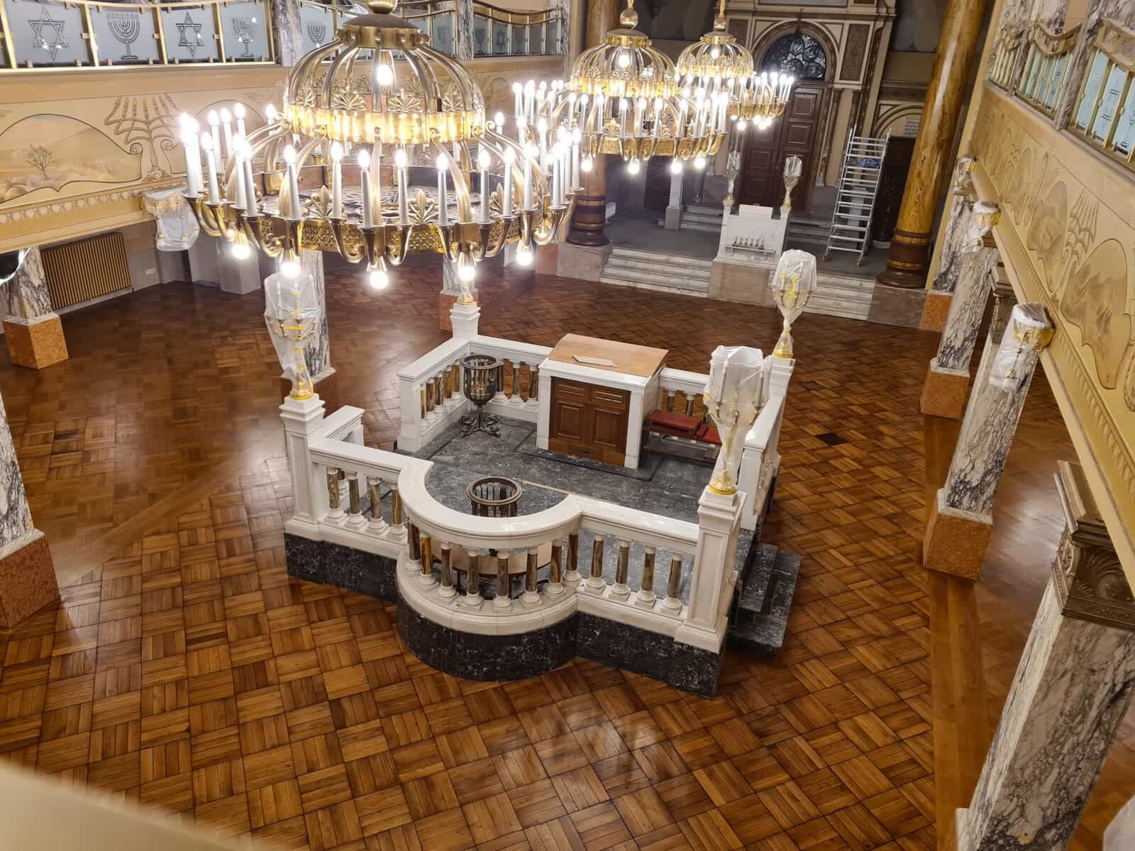 Great emphasis was put on the safety of the shul. This included installing bulletproof doors, alarms and cameras amongst many others. The furniture of the shul was also meticulously restored including the Aron Hakodesh, the Bimah,Amud, etc.